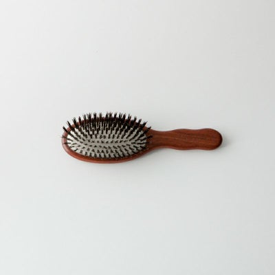 猪毛のヘアブラシは初めてです。美容室で猪毛のロ-ルブラシでブロ-をしてもらったのが、買おうと思ったきっかけです。 猪毛でブロ-するとそれだけでつやが出る感じがして、髪にいいのかなと感じました。 ロ-ルブラシよりも普通のヘアブラシのほうが使いやすいかなと思い、色々と猪毛のヘアブラシを、ネットで調べました。意外と値段が高いのでびっくり。 でも、アッカカッパのヘアブラシは、リ-ズナブルで、しかも140年の歴史があって、すごいなと思いました。 デザインや色、素材も自分好みです。 使ってみると、やっぱり良いと思います。髪の表面がつるっとして、艶が出ます。でももう少し硬い猪毛のほうが、良いかなとも感じました。 総合的には満足です。大事に使っていきます。